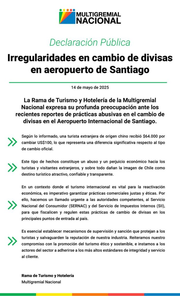 Declaración Pública: irregularidades en cambio de divisas en el aeropuerto de Santiago