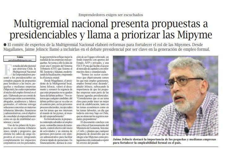 Multigremial Nacional presenta propuestas a presidenciables para fortalecer las Mipymes en Chile