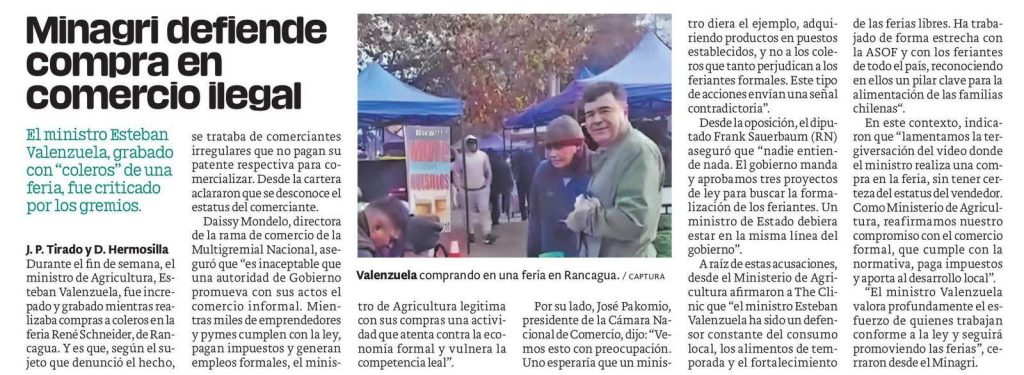 Ministro Valenzuela no reconoce error y dice que «no sabe» si el comerciante al cual le compró es informal