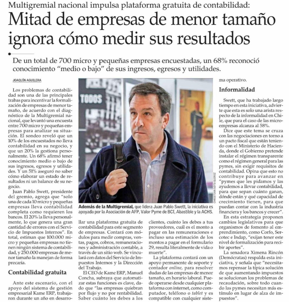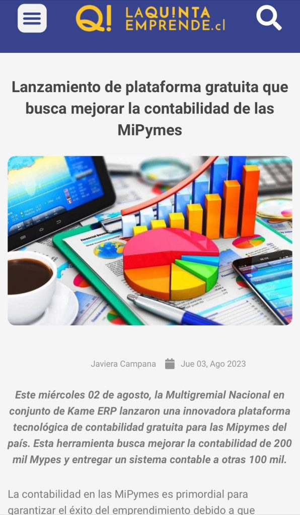 La Multigremial Nacional y Kame ERP anunciaron el lanzamiento de la plataforma www.contabilidadgratuita.cl
